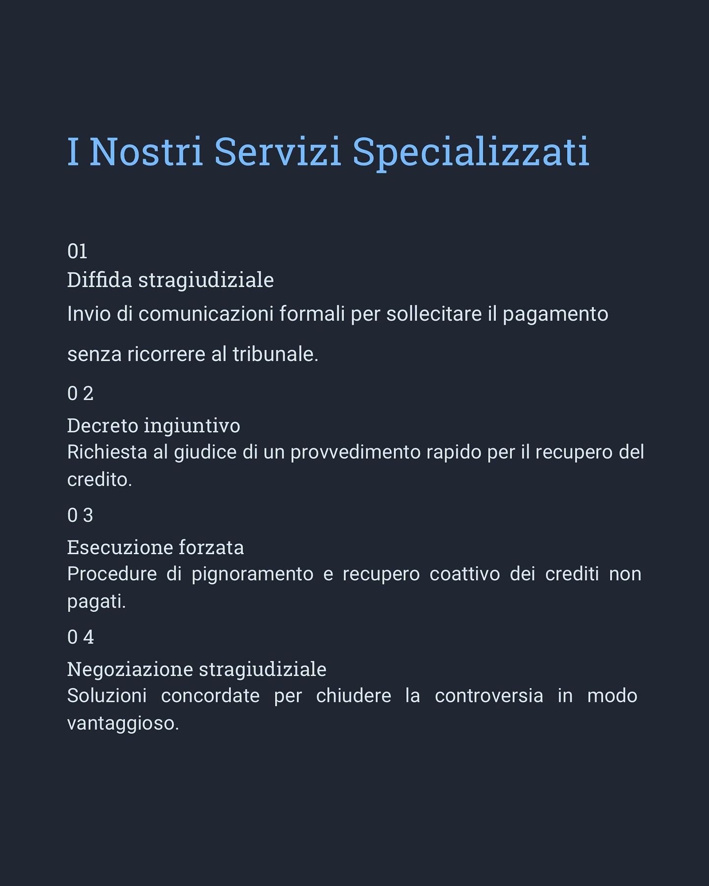 Elevato tasso di successo nel recupero crediti, con tempi contenuti e costi trasparenti.